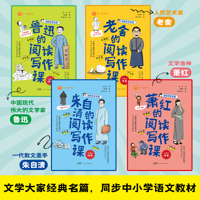 儿童读物文学经典 漫画名家名篇全套4册 小学生三年级四年级五六年级必读课外书阅读书籍 阅读写作课 书 鲁迅老舍朱自清萧红