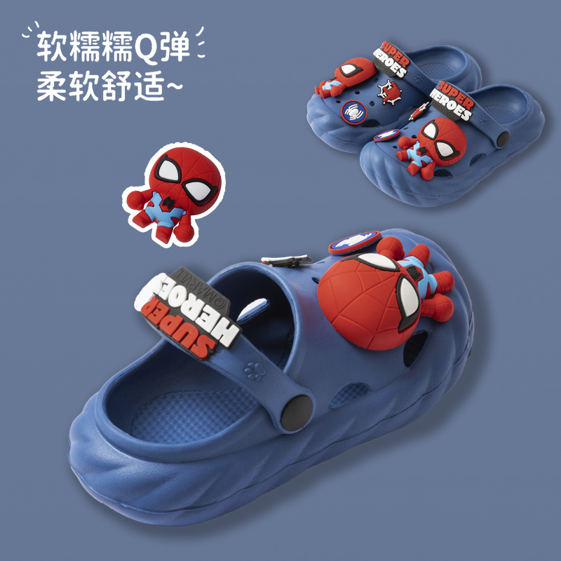 卡通男童洞洞鞋 正版 夏季 防滑室内外小宝宝拖鞋 授权蜘蛛侠儿童拖鞋