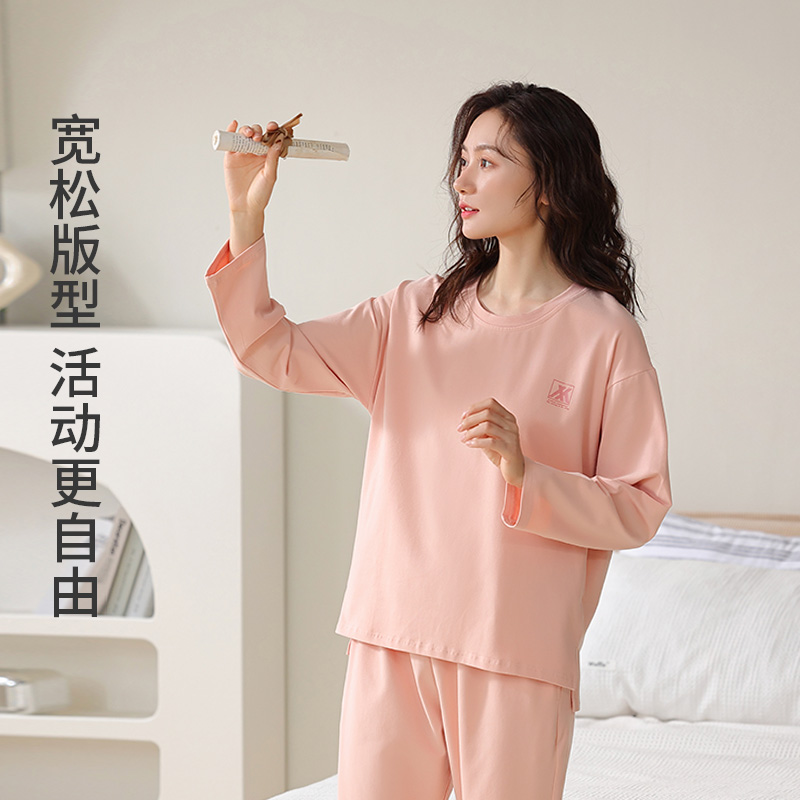 新品 家居服外穿套装 纯棉睡衣女圆领长裤 薄款 长袖 新一步2025年春季