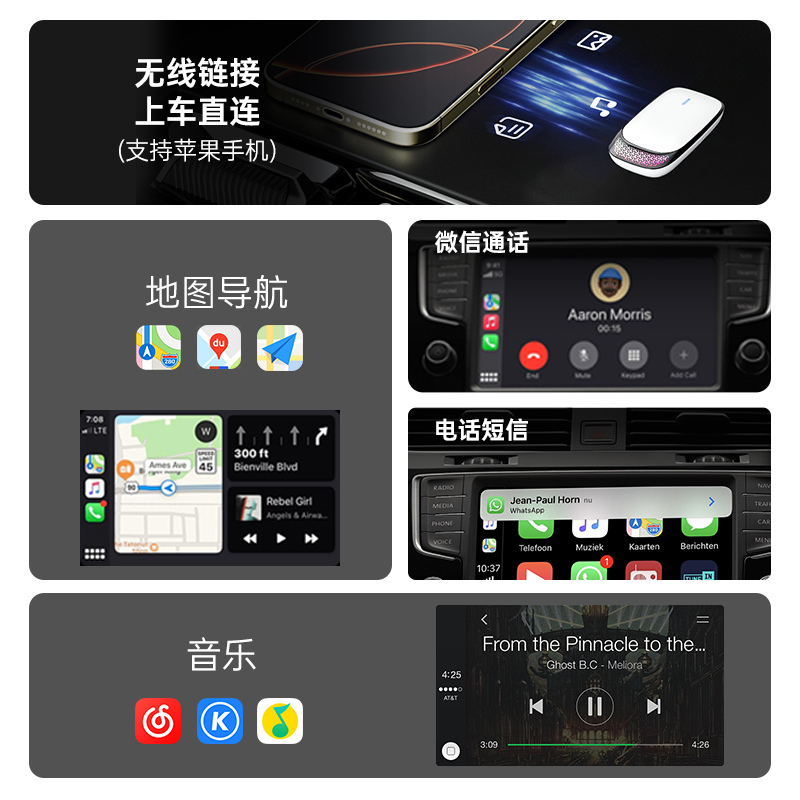 无线carplay适用于华为小米Carwith安卓carlink互联无线iccoa盒子