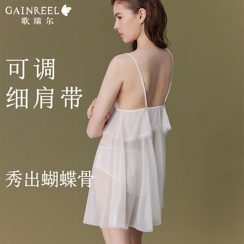 歌瑞尔修身 显瘦A字睡裙2025年春深V睡衣性感禁欲系透气蕾丝家居服