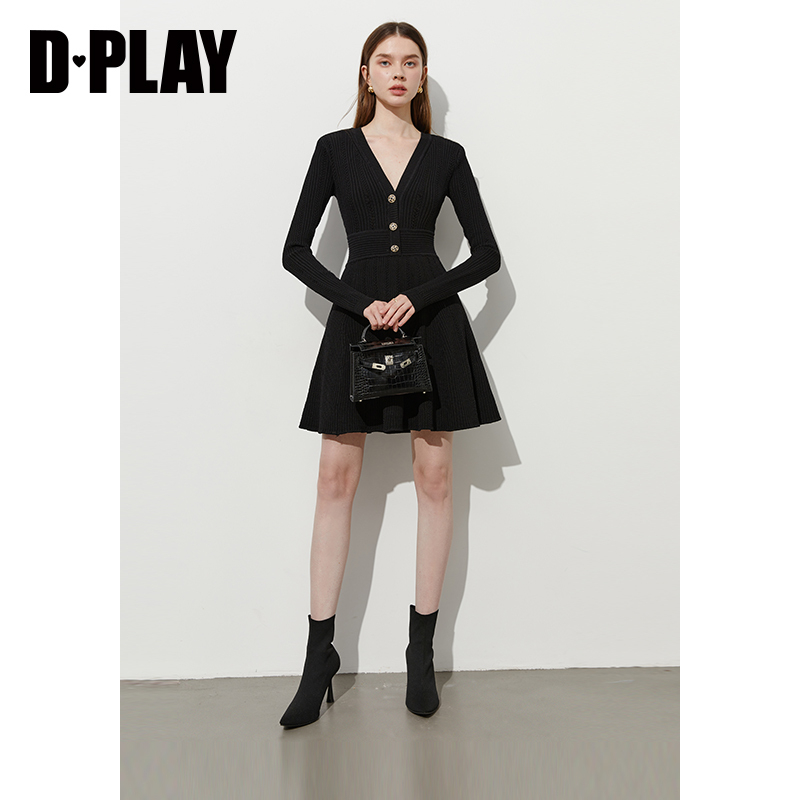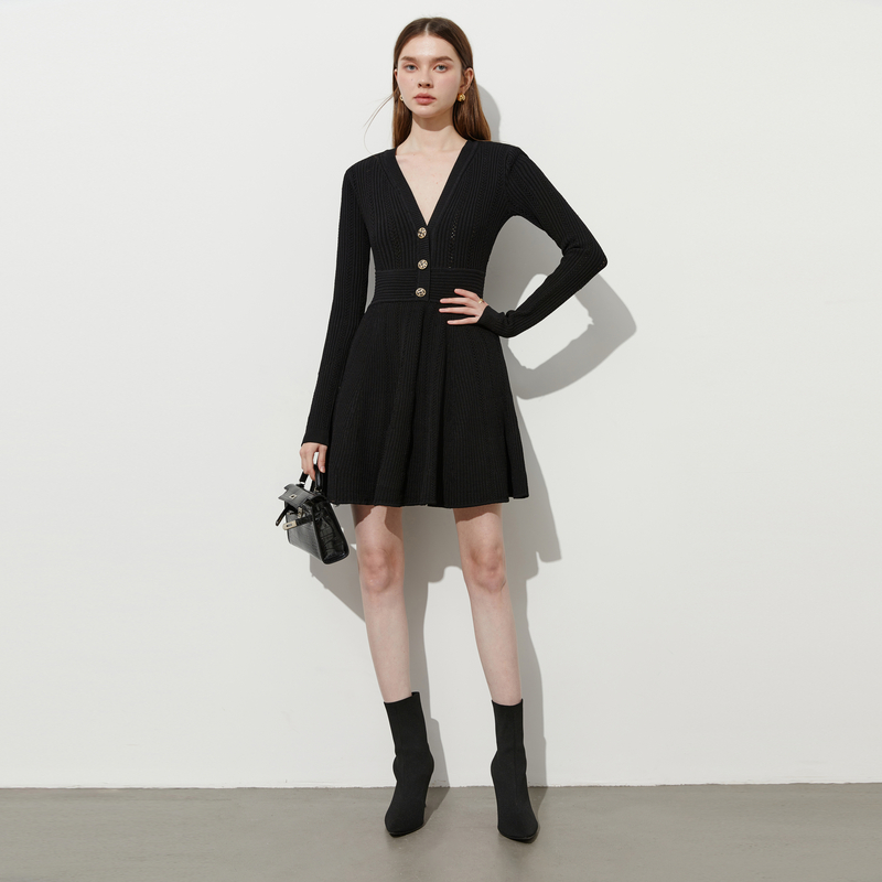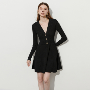 新品 OCHIRLY欧时力 羊毛V领毛织连衣裙长裙配吊带裙气质2025秋季