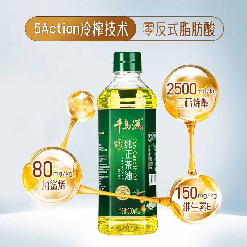 千岛源纯正山茶油900ml零反式 脂肪酸物理冷榨油茶籽油家庭装