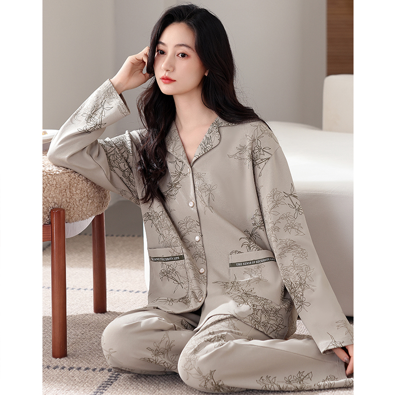 长袖 简约舒适家居服套装 长裤 夏季 可外穿 2025新款 纯棉睡衣女春秋季