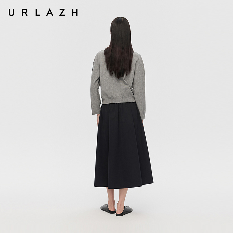 黑宽松高腰A字半裙气质简约伞裙 新款 商场同款 URLAZH有兰2025秋季