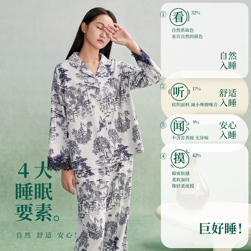 款 睡衣女春秋季 2025新款 国风蕾丝长袖 安之伴 家居服套装 巨柔软