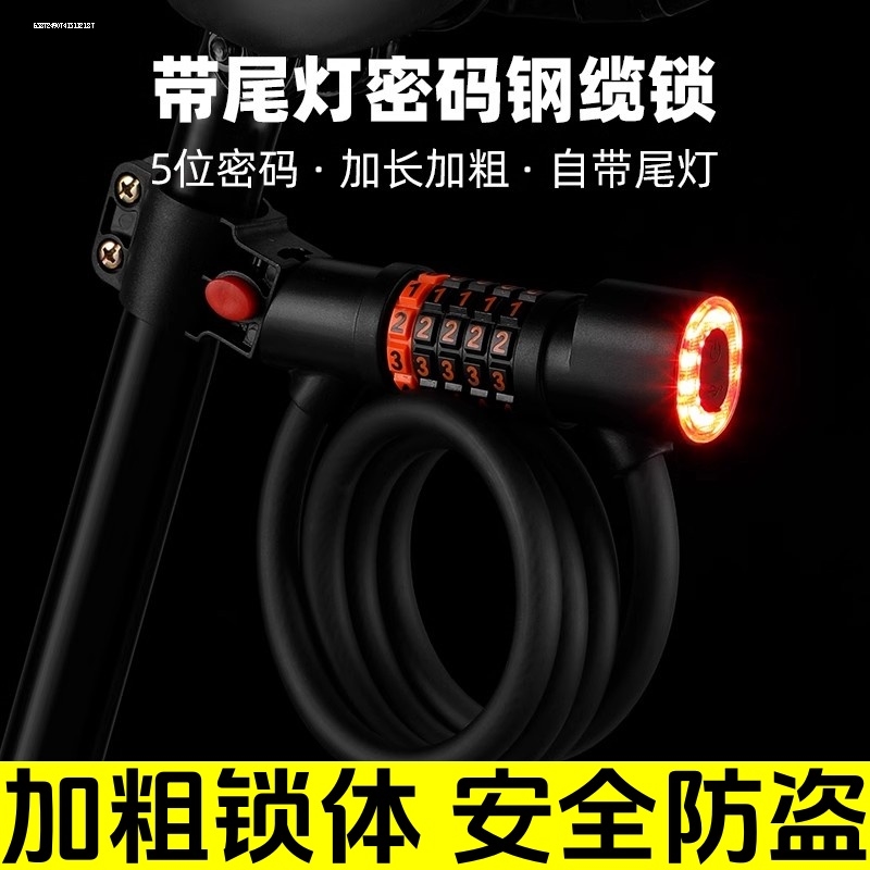 自行车密码 公路车链条锁单车骑行配件 锁带尾灯山地车锁防盗便携式