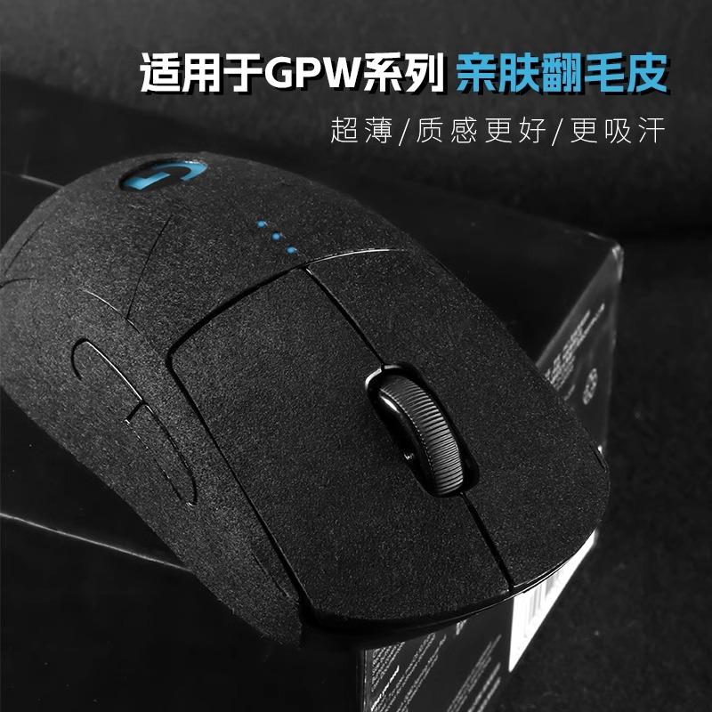 适用罗技GPW二代鼠标防滑贴四代贴狗屁王一代翻毛皮吸汗三代全包
