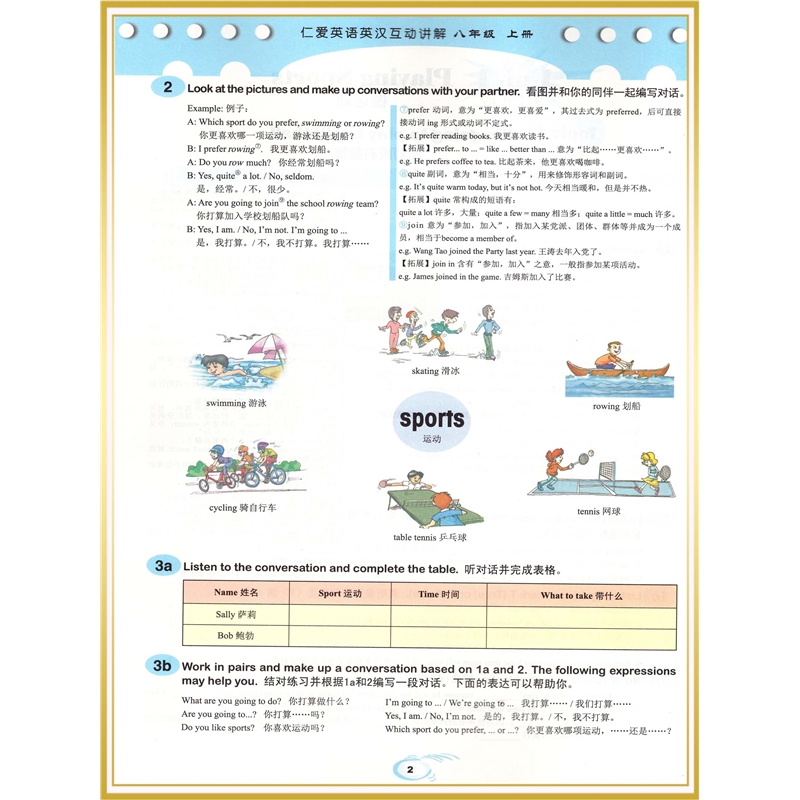 科学普及出版 2025秋英汉互动讲解 赠课文单词词汇表 初二8年级上册仁爱英语互动讲解含课文原文汉语翻译 社 八年级上册