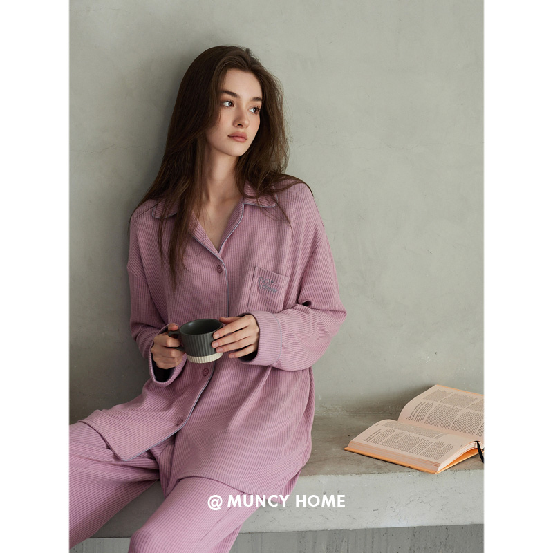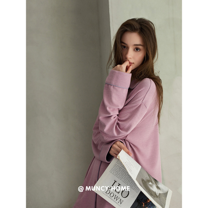 芋桃小酥 套装 时尚 长袖 睡衣女春秋宽松简约家居服条纹开衫 曼系