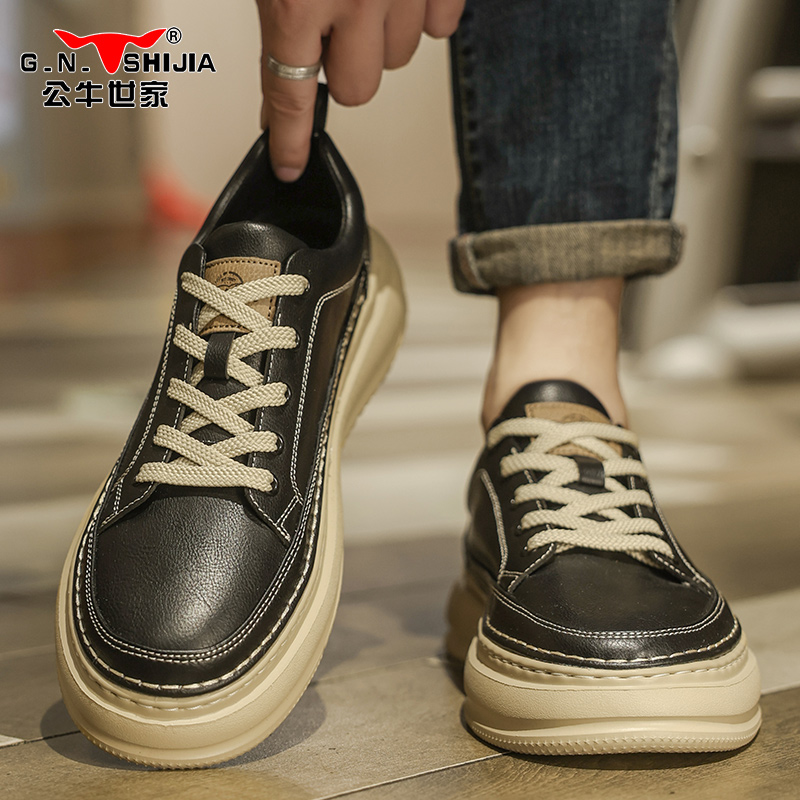 女鞋 女黑休闲单鞋 子2025春秋新款 厚底英伦风小皮鞋 爆款 真皮乐福鞋