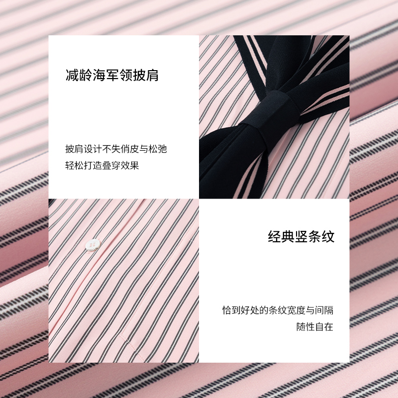 女学院风休闲披肩条纹易洗快干长袖 新款 上衣 2025春季 FF仿佛衬衫