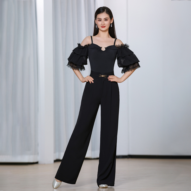 子微喇叭开叉摩登国标跳舞裤 女舞蹈练功长裤 拉丁舞服下装 康尼新款