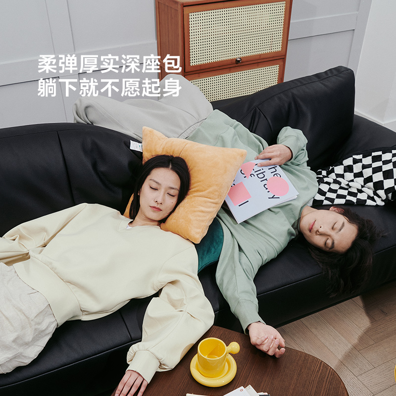 法莎蒂意式 极简皮艺直排棉花糖沙发 极简拉扣真皮沙发小户型意式