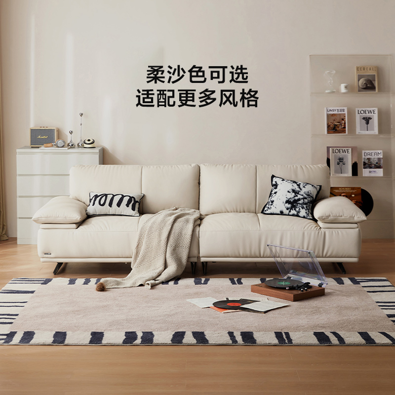 法莎蒂现代奶油风大象耳朵真皮沙发小户型意式 极简皮艺直排沙发