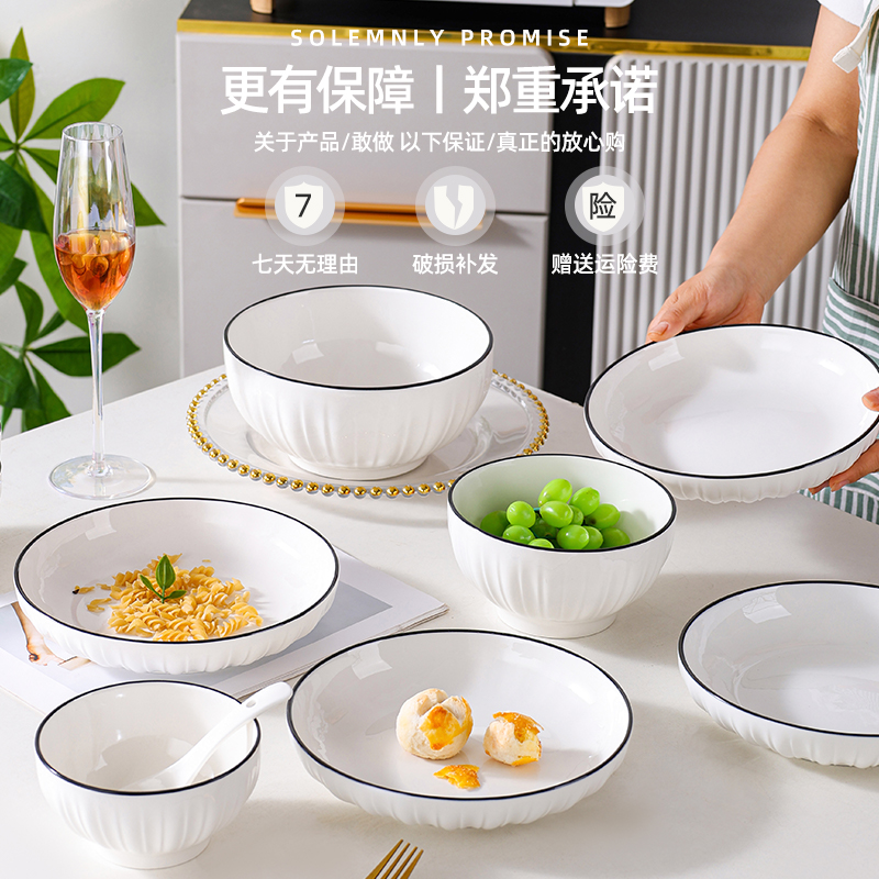复古风大碟子 简约法式 高级感深盘耐高温2025新款 加厚陶瓷餐具套装