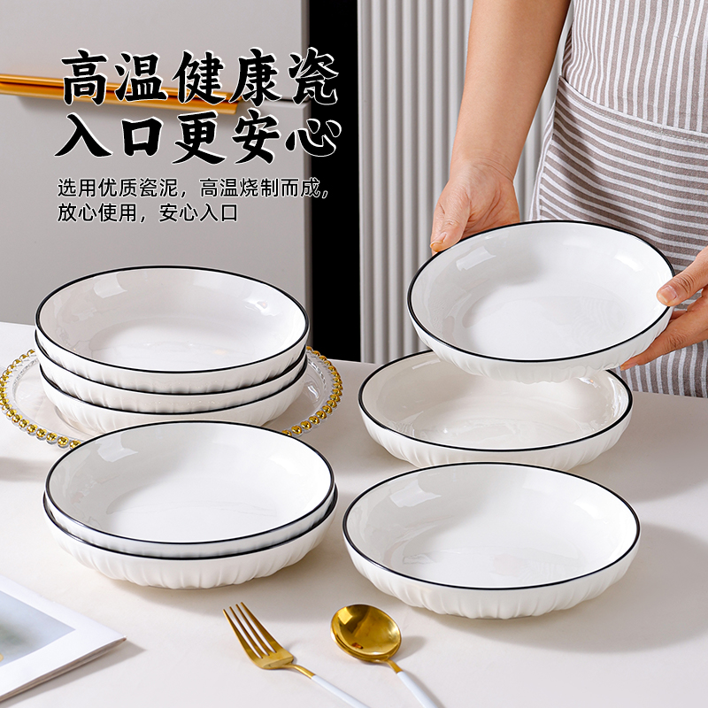 日式 家用陶瓷平盘凉菜圆盘调味碟饭盘实用盘 盘子菜盘餐具碗碟套装