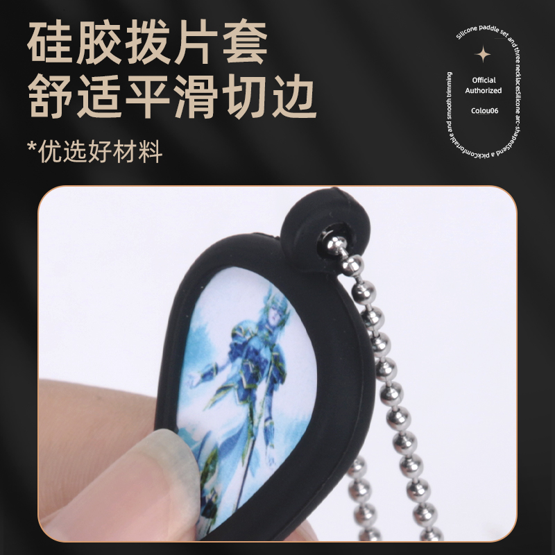 硅胶吉他拨片夹拨片项链挂绳挂件pick收纳吊坠正反面两片装 含拨片