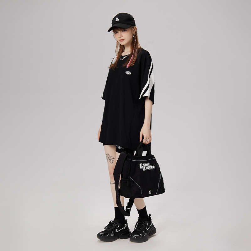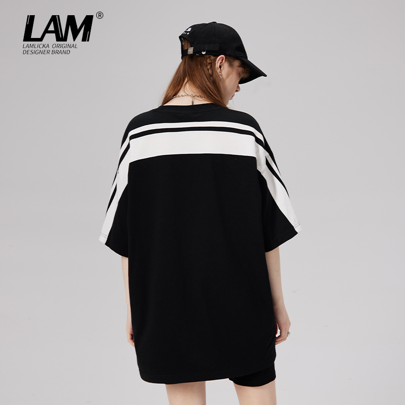 上衣宽松 薄廓形休闲半袖 LAMLICKA日系拼接撞色圆领短袖 T恤男夏季