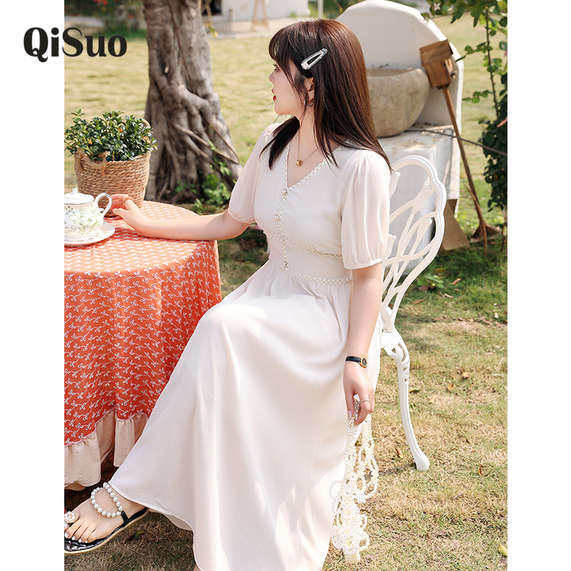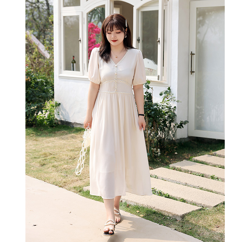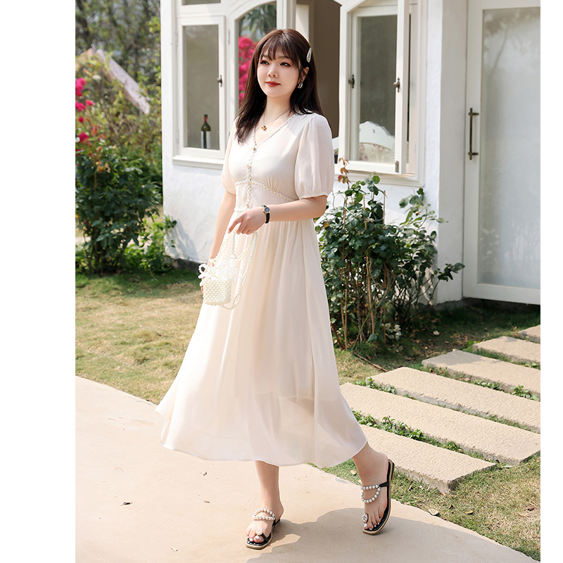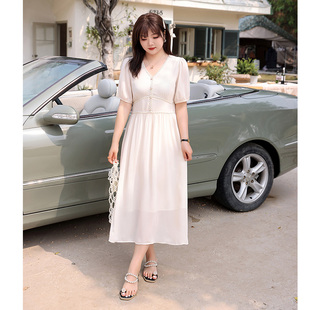 雪纺连衣裙气质温柔风长裙子 V领收腰显瘦胖MM大码 2023年夏装 新款