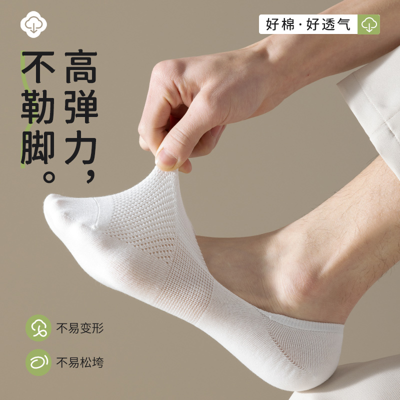 纯棉防臭浅口隐形袜夏天男款 网眼薄款 短袜 不掉跟船袜夏季 袜子男士