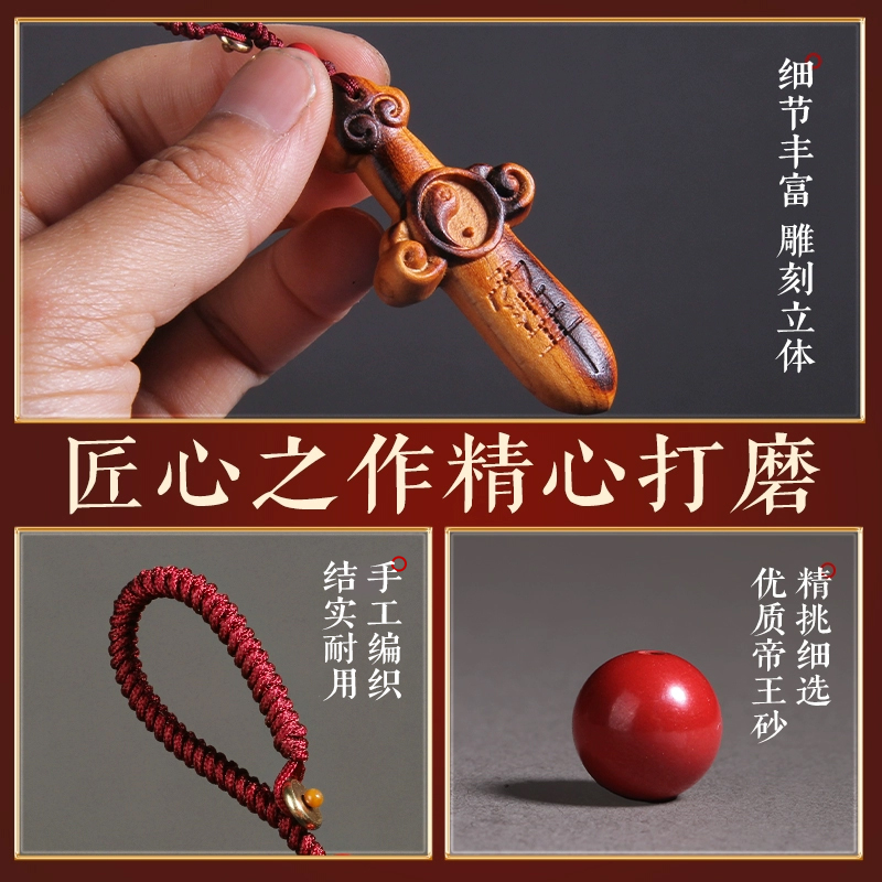 天然雷击桃木枣木太极七星紫微剑挂件朱砂钥匙扣男士 婴儿童吊坠
