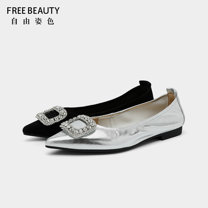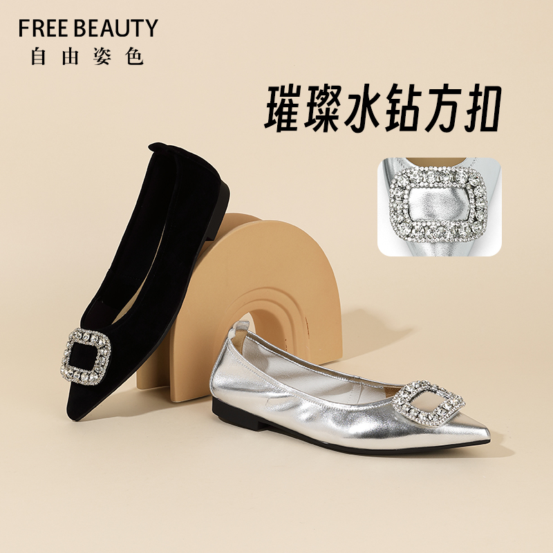 气质优雅宴会浅口单鞋 新款 春秋季 自由姿色一脚蹬水钻方扣单鞋
