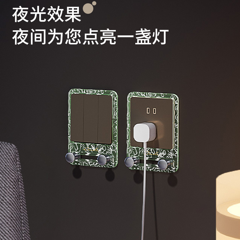 轻奢冰川纹夜光开关贴家用开关保护套开关面板装 饰多功能挂钩自粘