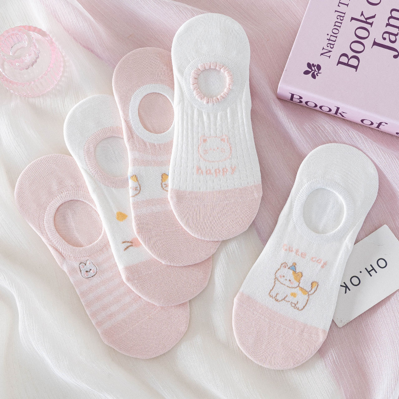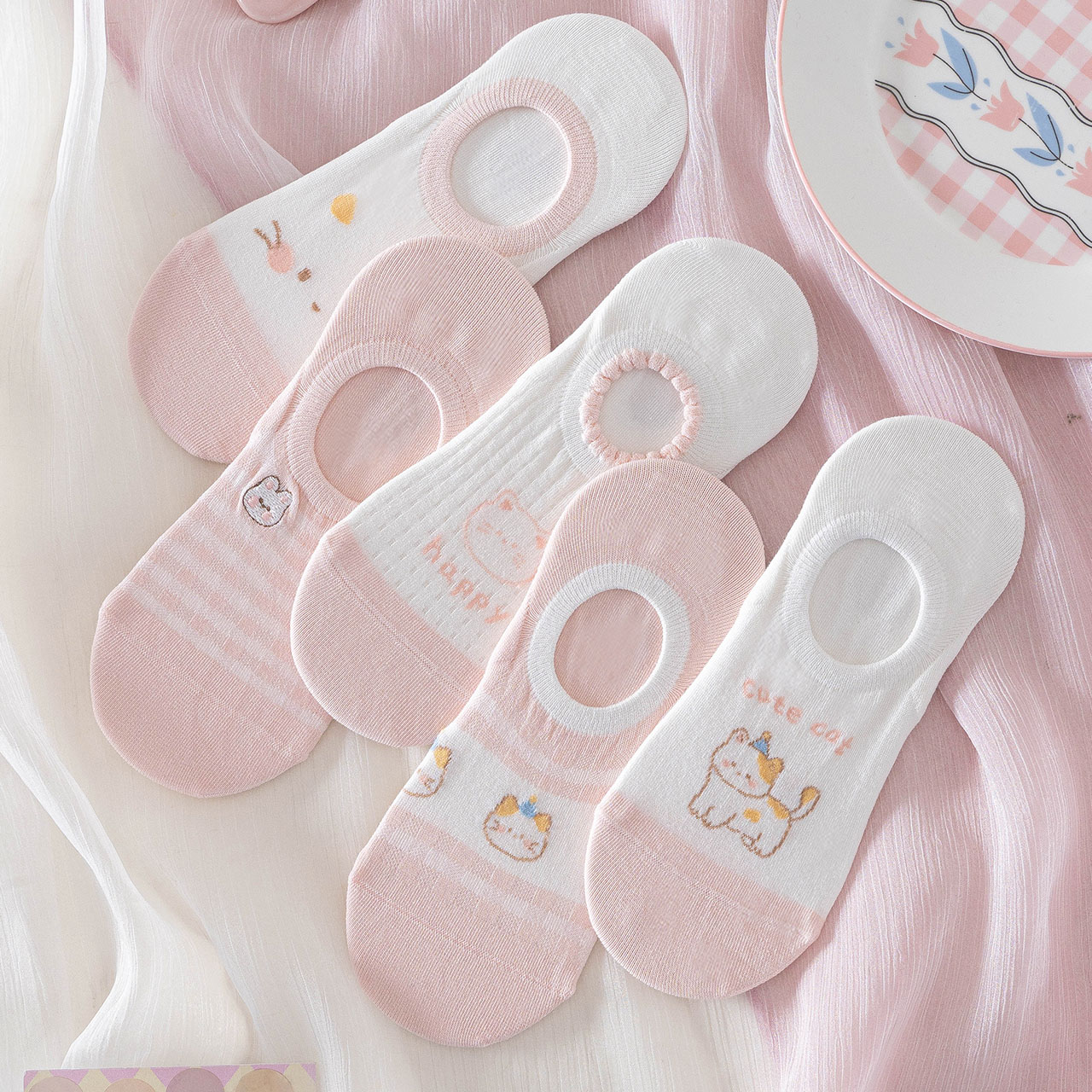 caramella船袜女棉不掉跟防滑夏季 舒适透气袜子可爱少女短袜 薄款