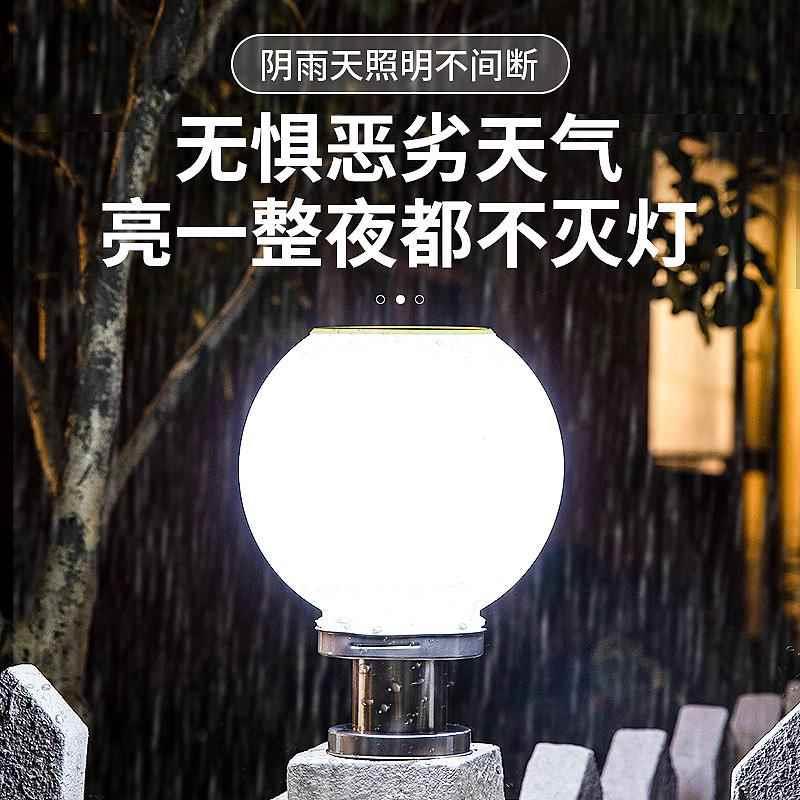 新型太阳能围墙柱头灯户外庭院别墅农村大门口照明圆球形门柱子灯