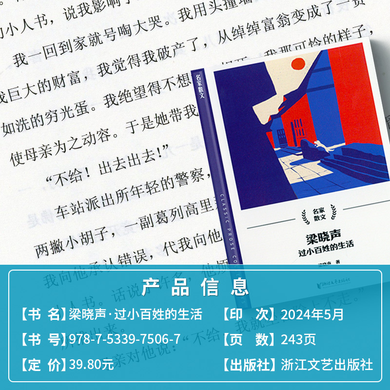 梁晓声散文精选 作品选散文读本课外阅读书籍浙江文艺出版 过小百姓 中小学生课外阅读书籍经典 社 生活 名家散文