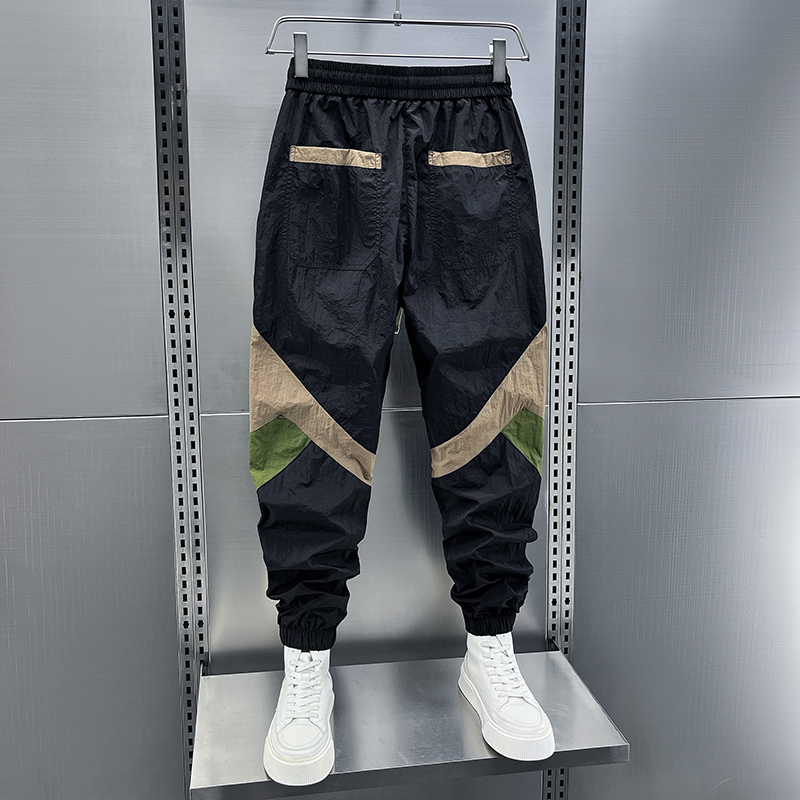 松紧腰拼接个性 拼色束脚休闲裤 小脚裤 潮流时尚 夏季 九分哈伦裤 薄款