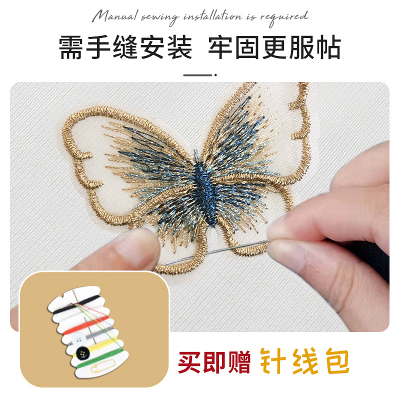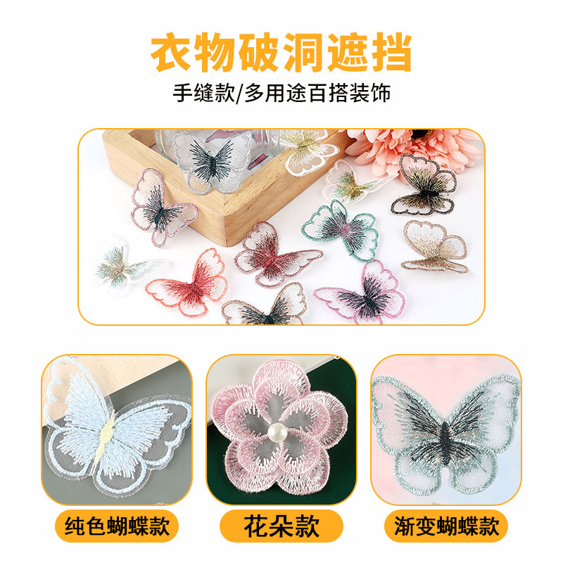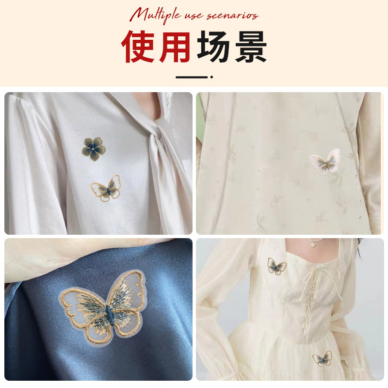 真丝补丁贴桑蚕丝绸衣服烂了补洞贴修补刺绣贴纱裙缝补雪纺蝴蝶x