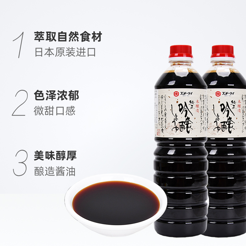 日本大字原装 2瓶酿造酱油寿司刺身寿喜锅调味料理 进口浓口酱油1L