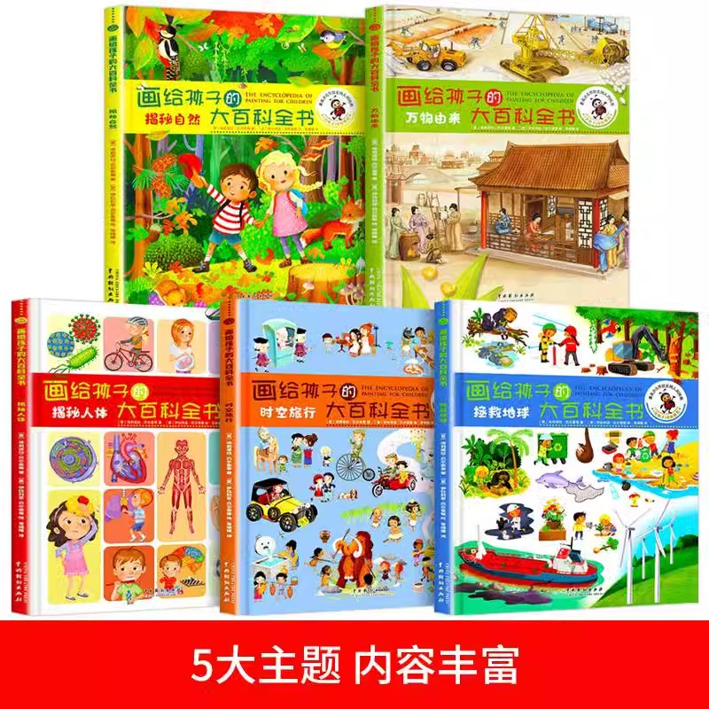 大百科全书全套5册精装 硬壳 儿童科普启蒙绘本 12岁必读小学生课外阅读书籍 揭秘自然人体万物由来时空旅行拯救地球 画给孩子