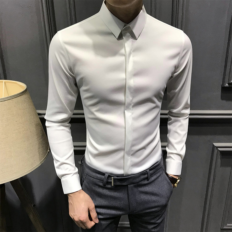寸衫 丝光免烫抗皱衬衫 高级感休闲商务白衬衣职业正装 春秋季 男长袖