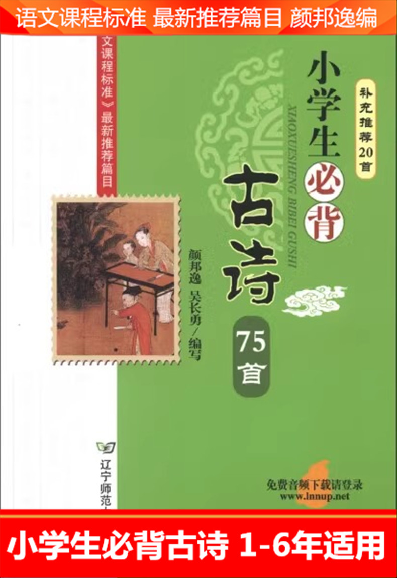 推荐 9787565208775 小学生必背古诗75首 辽宁师范大学 颜邦逸 书目 一二三五六年级语文课程新标准最新 20首 补充推荐 免费音频