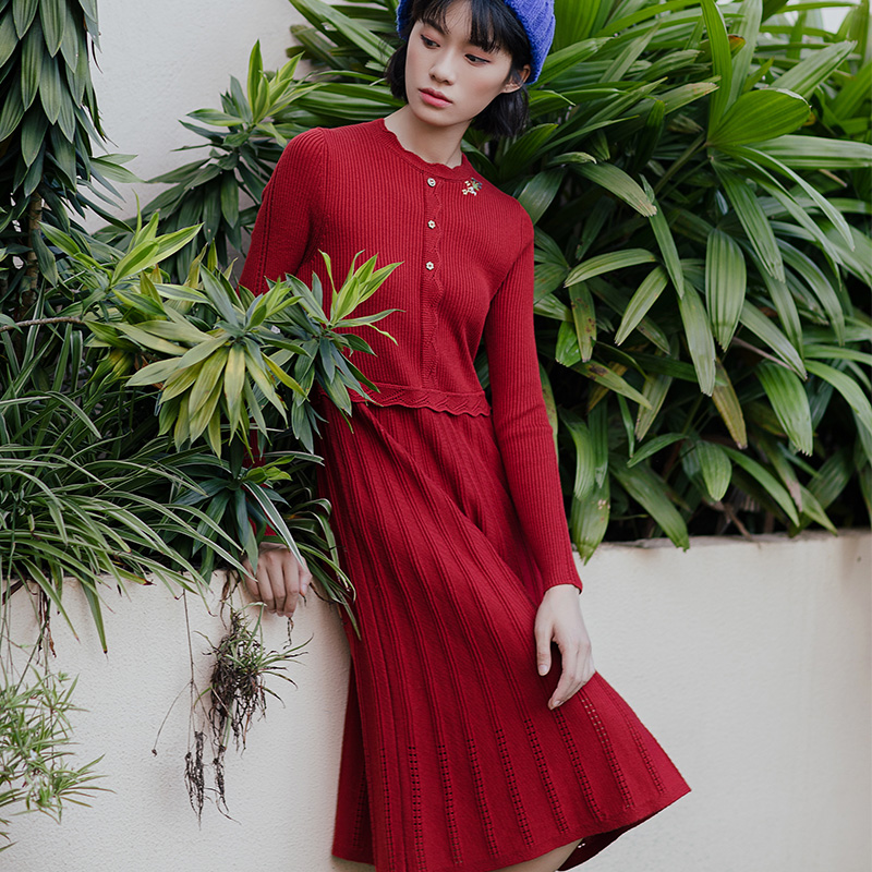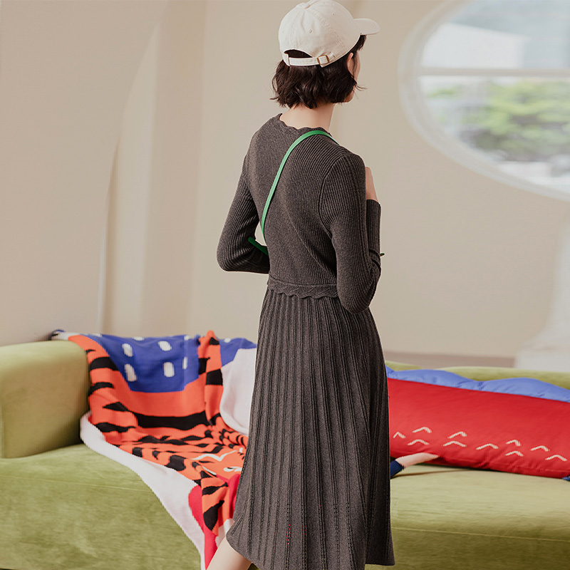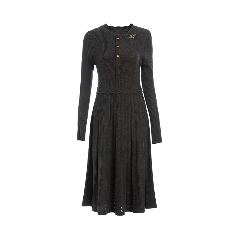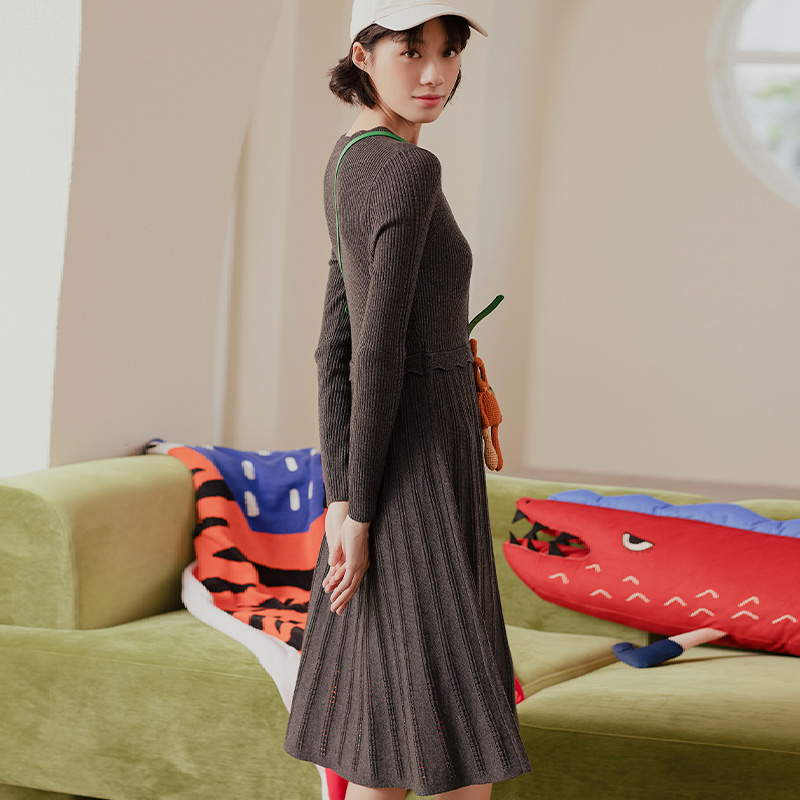 OCHIRLY欧时力 气质2025秋冬尖货 抗起球羊毛针织连衣裙长款