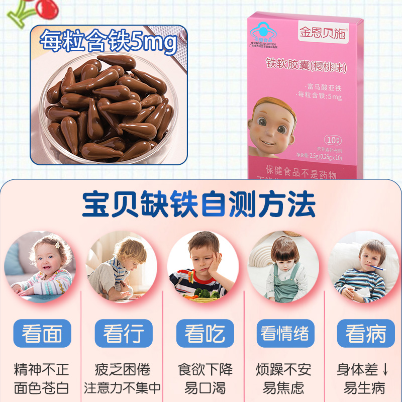 金恩贝施补铁儿童铁剂宝宝补铁滴剂10粒装 天猫U先