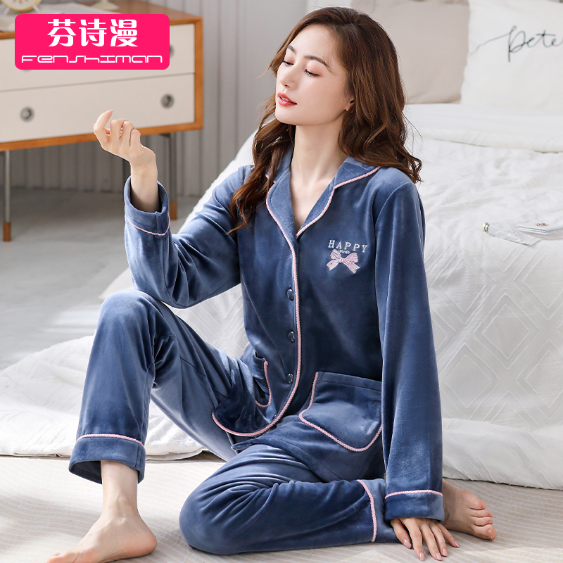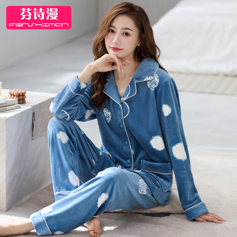 加厚珊瑚绒外穿家居服男套装 情侣羊羔绒睡衣女冬季 抗静电 轩靓