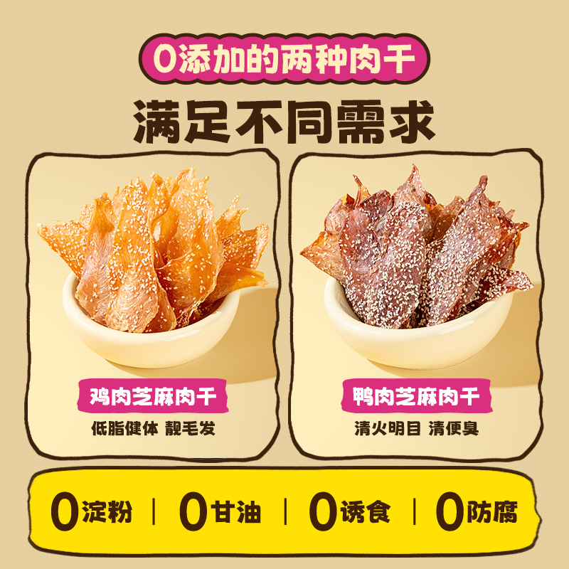 肉肉怪鸡胸肉干芝麻鸭肉干狗狗零食泰迪金毛成犬幼犬宠物磨牙训练