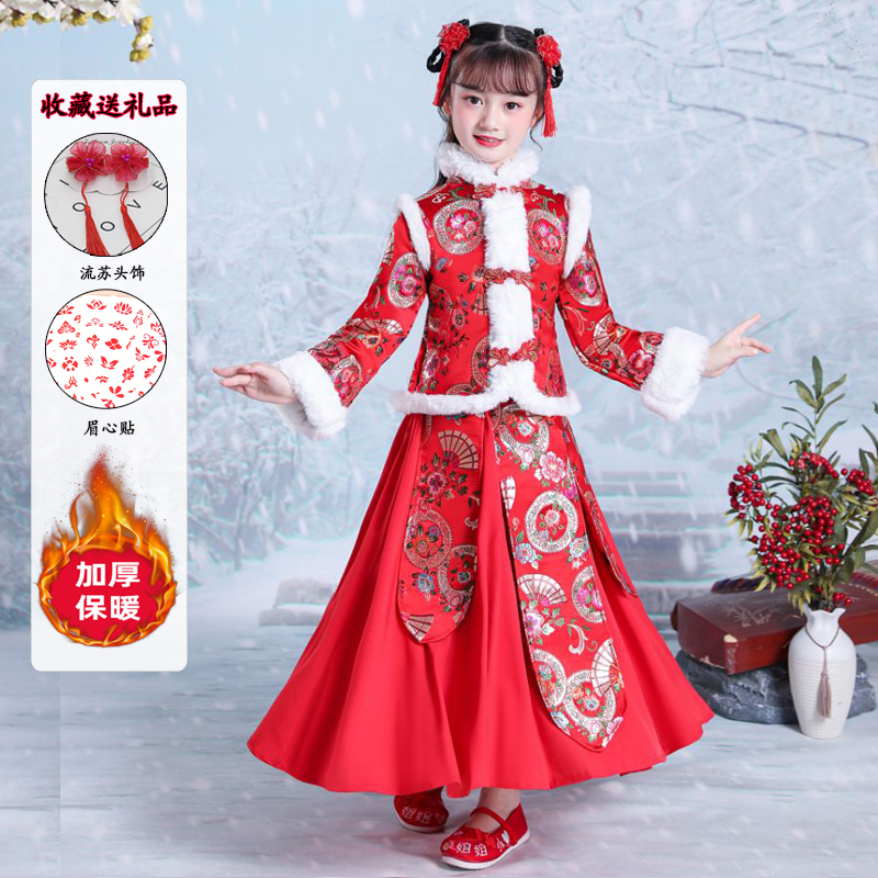 元 加绒中国风古汉服马面裙亲子披风 旦儿童喜庆演出拜年过新年服装