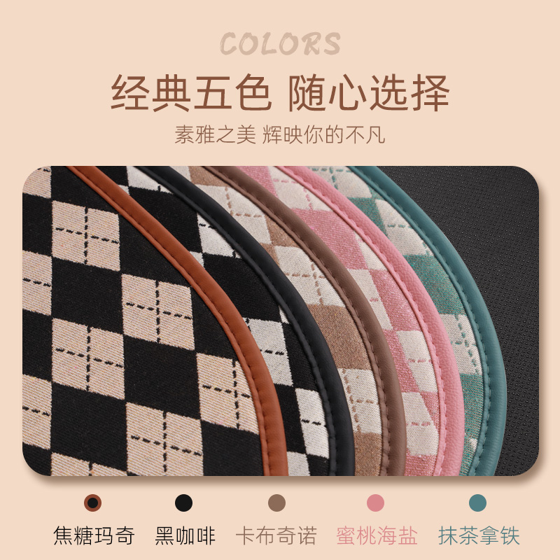 汽车坐垫四季 通用网红棉麻女士车内座垫菱格防滑小蛮腰半包后排垫