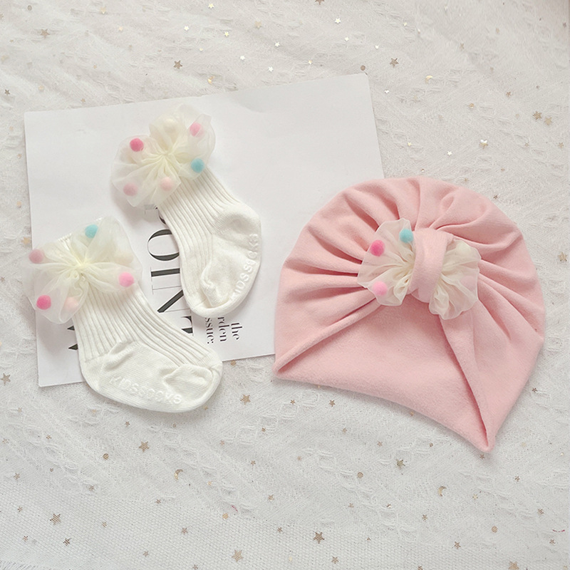 婴儿帽子秋冬季 女宝宝洋气针织花朵毛线帽冬天女童保暖护耳公主帽