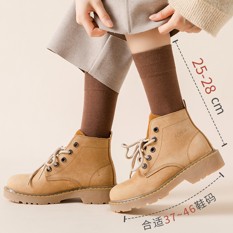 美拉德袜子女中筒袜2025秋冬季 长筒袜 纯棉无骨月子袜冬天配勃肯鞋