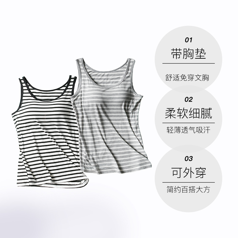 两件装 带罩杯柔软舒适 M.D.P. 可外穿舒适条纹打底背心 自营