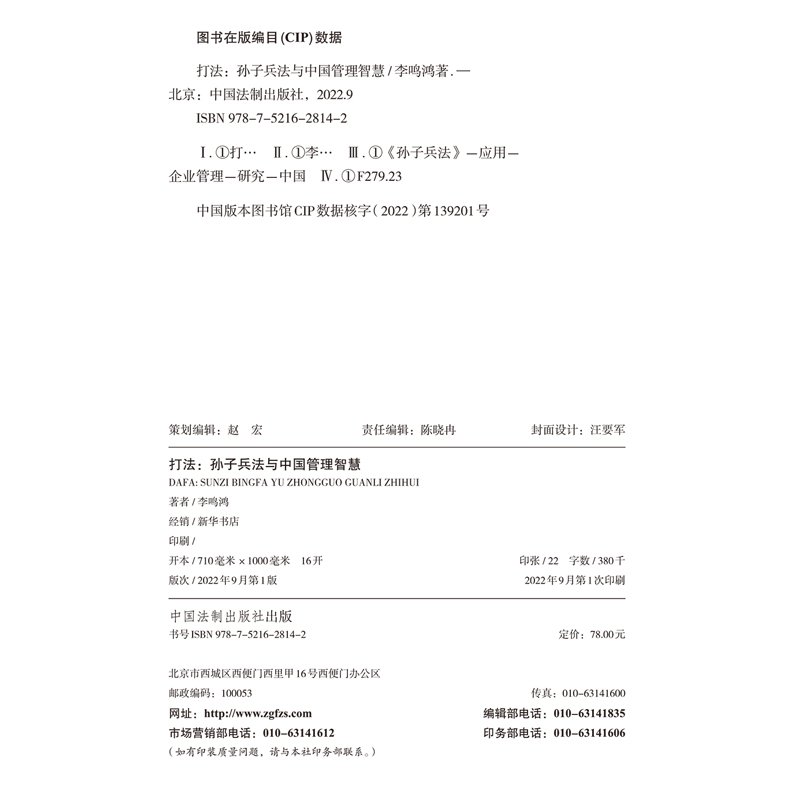 运用策略 社9787521628142 孙子兵法与中国管理智慧 法制出版 管理学 领导力 商战法则 企业管理操作实务书 李鸣鸿 打法 2022新书