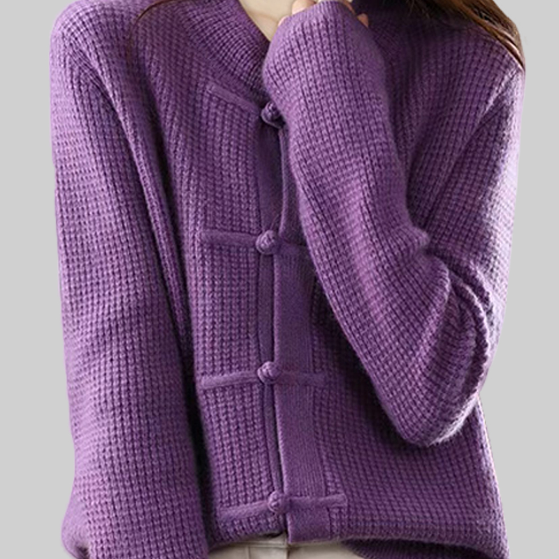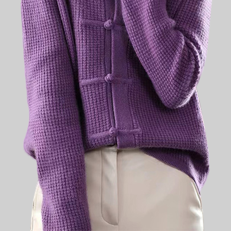 复古盘扣半高领毛衣外套宽松纯色小众针织上衣 新款 紫色开衫 女秋装