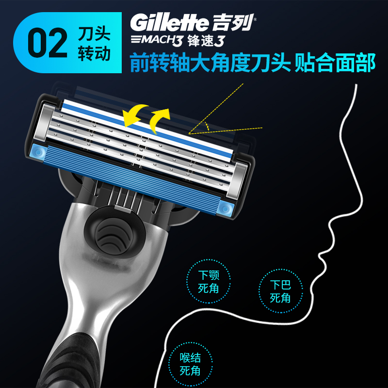 刀头 三层刀片刮脸刮胡刀原装 吉列锋速3刀片8片装 剃须刀手动男士