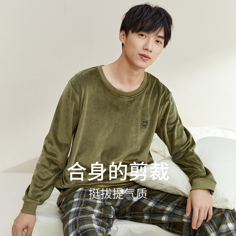 长裤 套装 家居服秋冬款 卫衣珊瑚绒睡衣男冬季 男装 秋鹿加厚加绒长袖